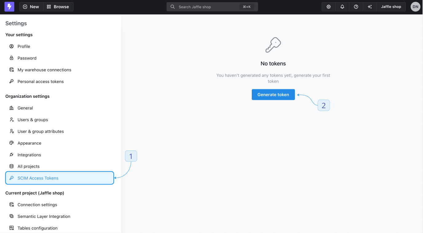 - In the sidebar, select SCIM Access Tokens.